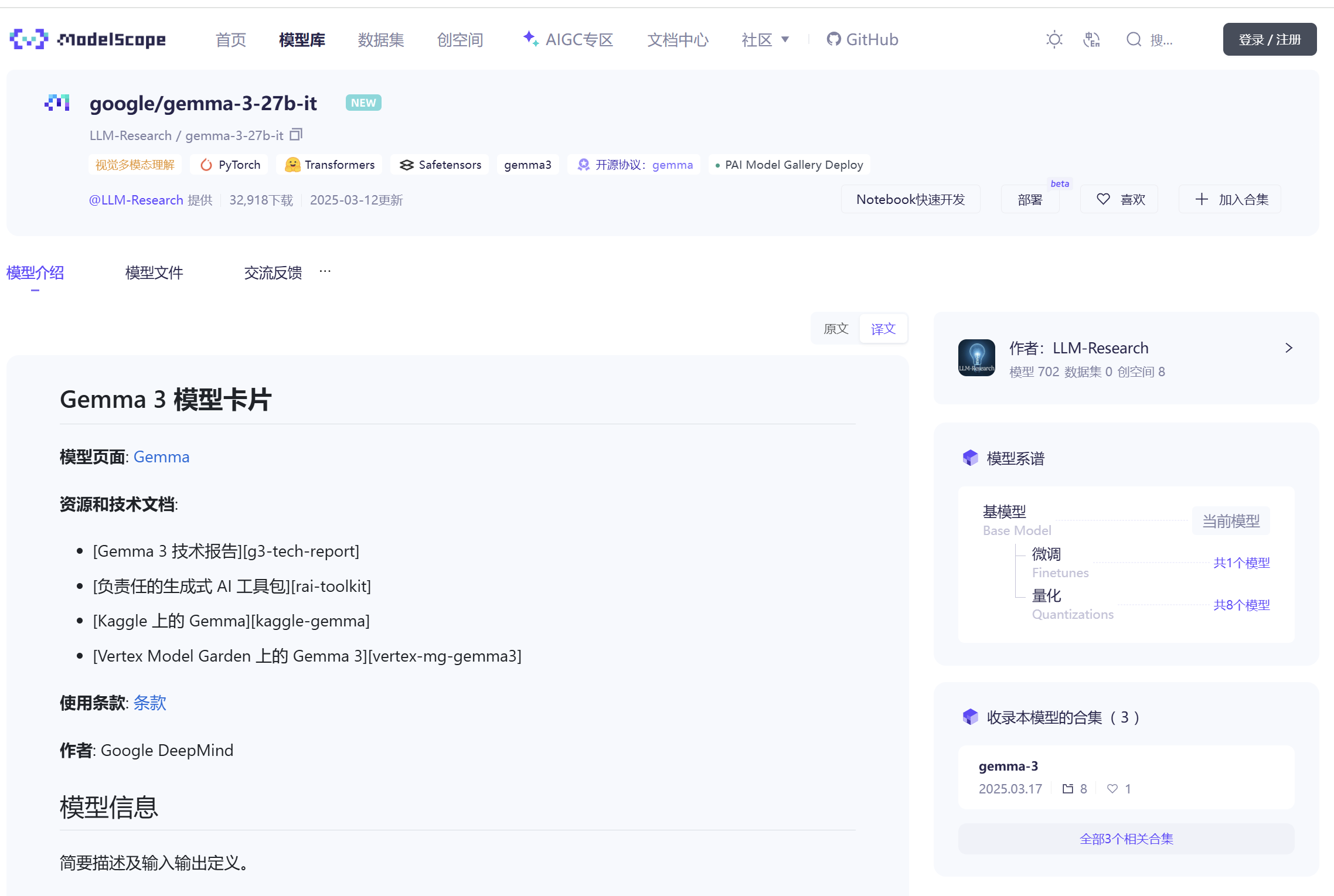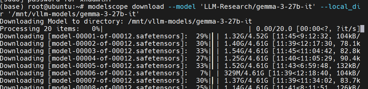 modelscope download --model 'LLM-Research/gemma-3-27b-it' --local_dir '/mnt/vllm-models/gemma-3-27b-it' //从魔搭社区下载模型权重到本地指定路径下