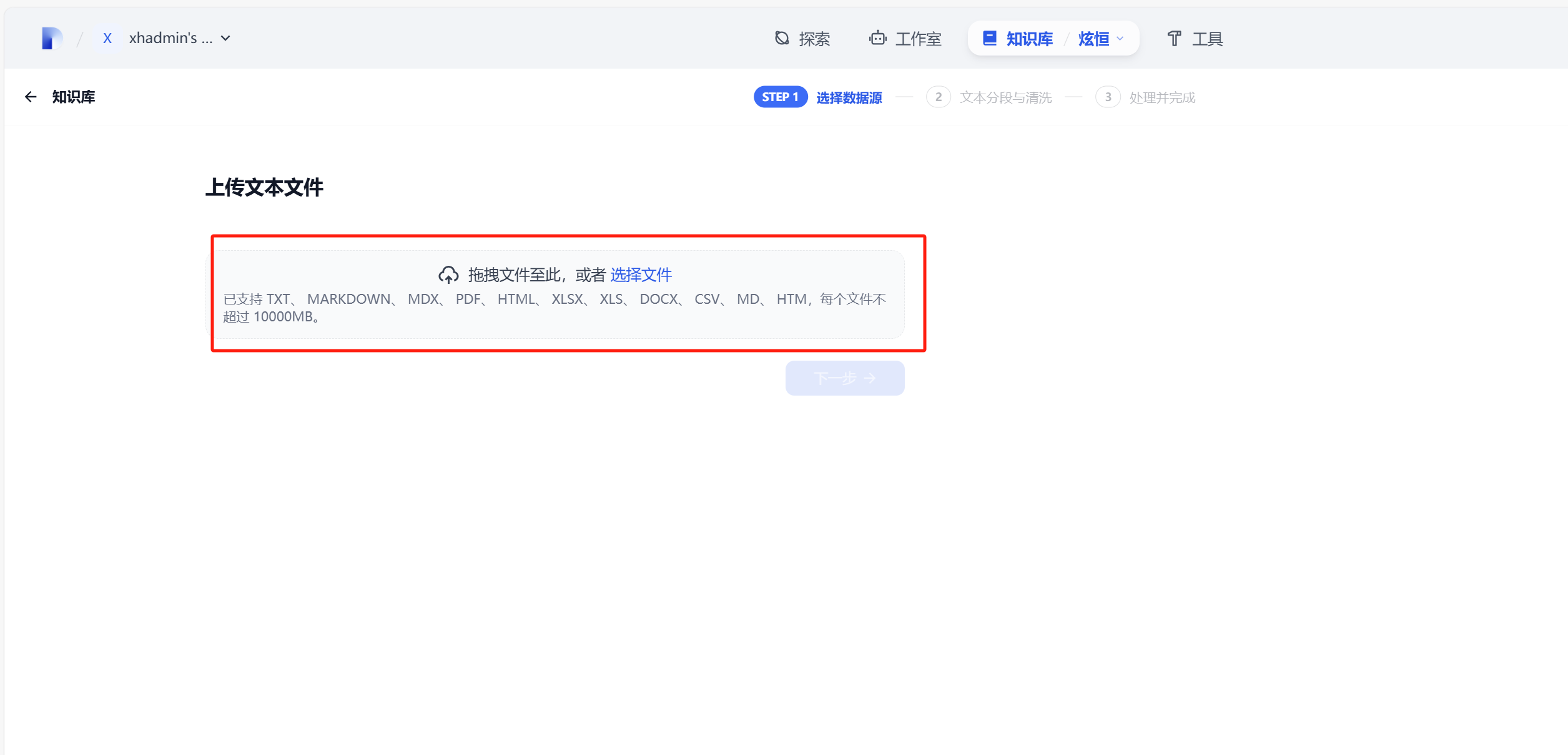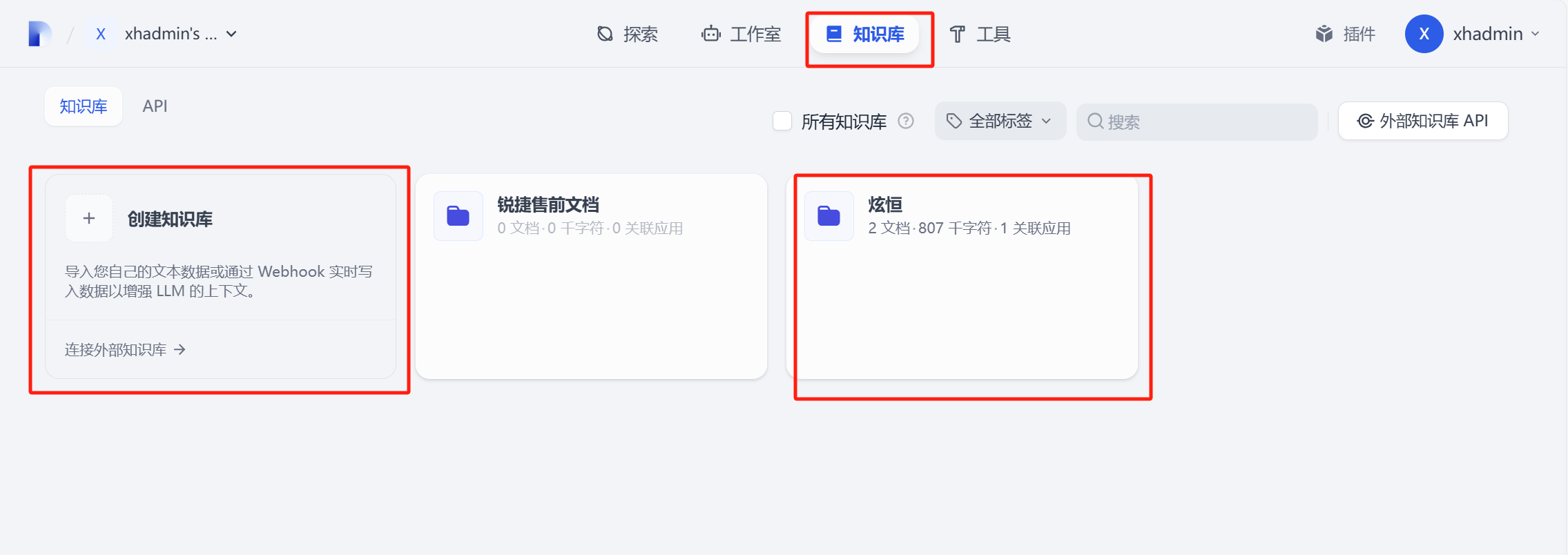 点击知识库,创建知识库
