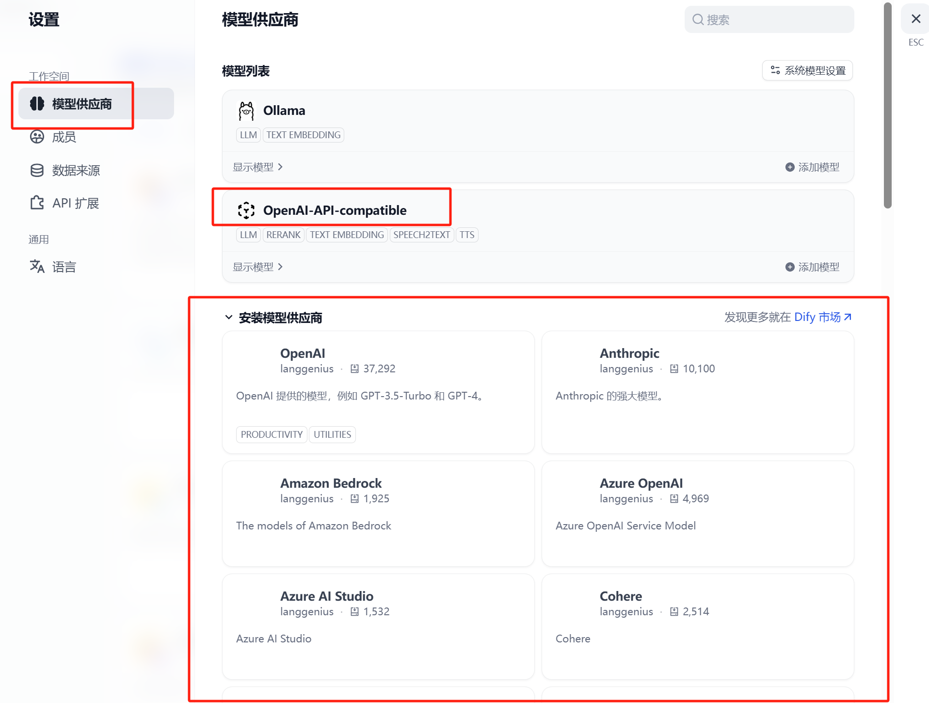 模型供应商:找到并安装OpenAI-API-compatible