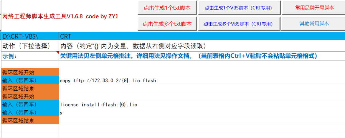 在左侧区域编辑代码后 点击 点击生成一个txt脚本 按钮生成脚本